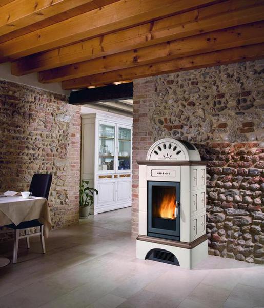 Moderne Pelletöfen. Auf Wunsch mit Warmluftverteilung in andere Räume.